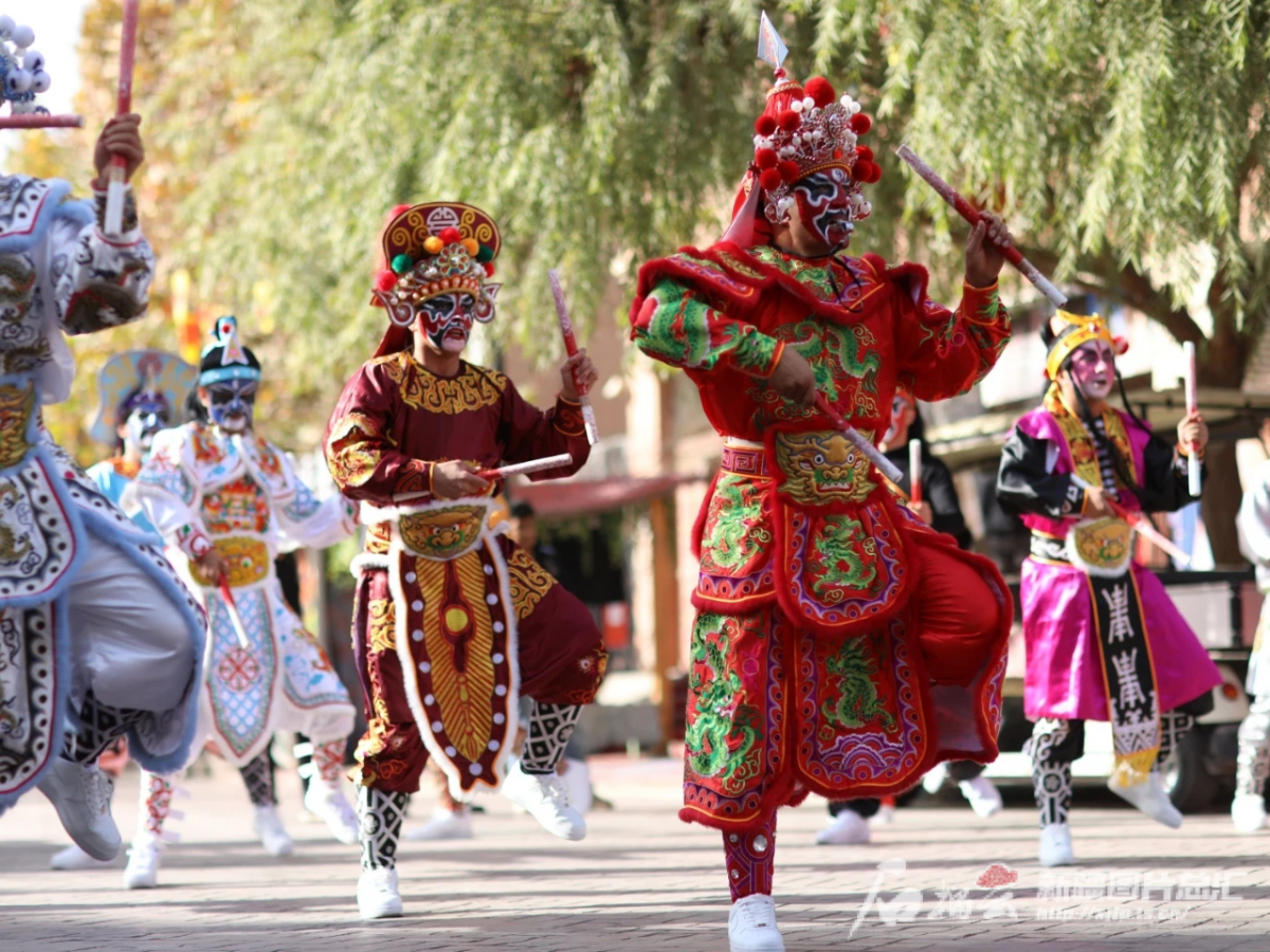 咚咚咚、咚咚咚……11月3日,喀什古城景区东门,一阵急促的锣鼓声响起,30多个“梁山好汉”们闪亮登场,他们踏着铿锵有力的步伐而来,手中的英歌槌被快速挥动,在指尖翻转,一下下叩击,一声声呐喊,将豪情斗志传上云霄。